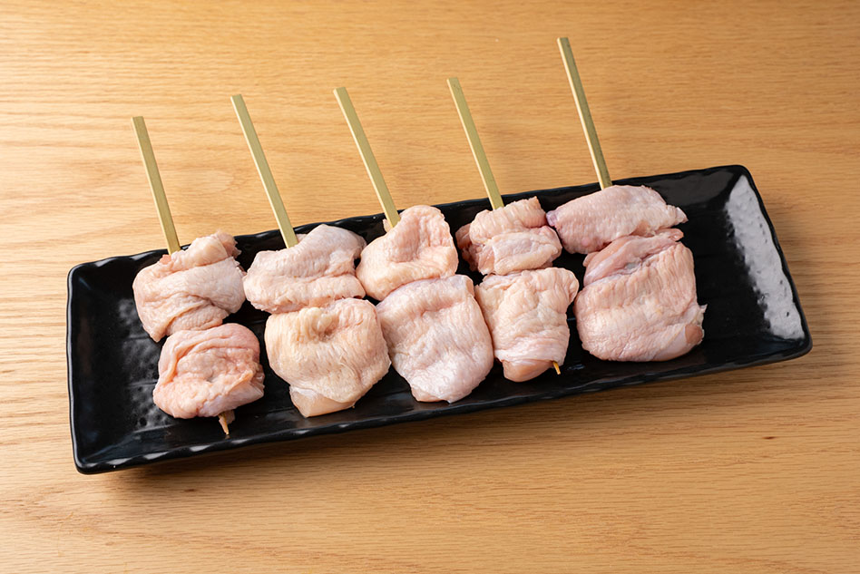 その点、こちらの手羽串では平串を使用しているため扱いやすくなっております。